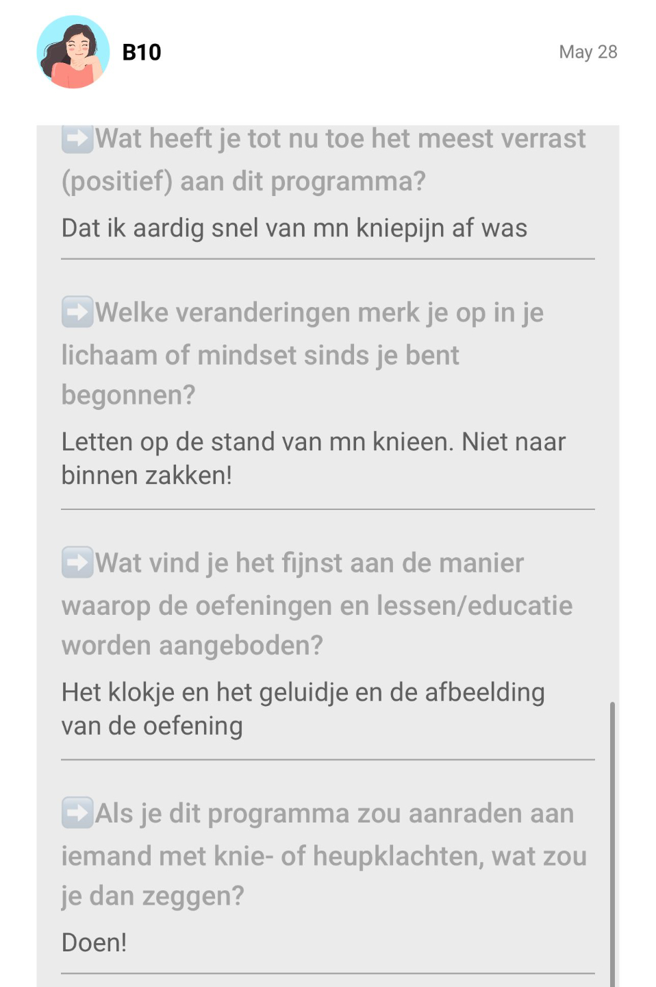 Geen terugval, geen pijn, geen frustratie.